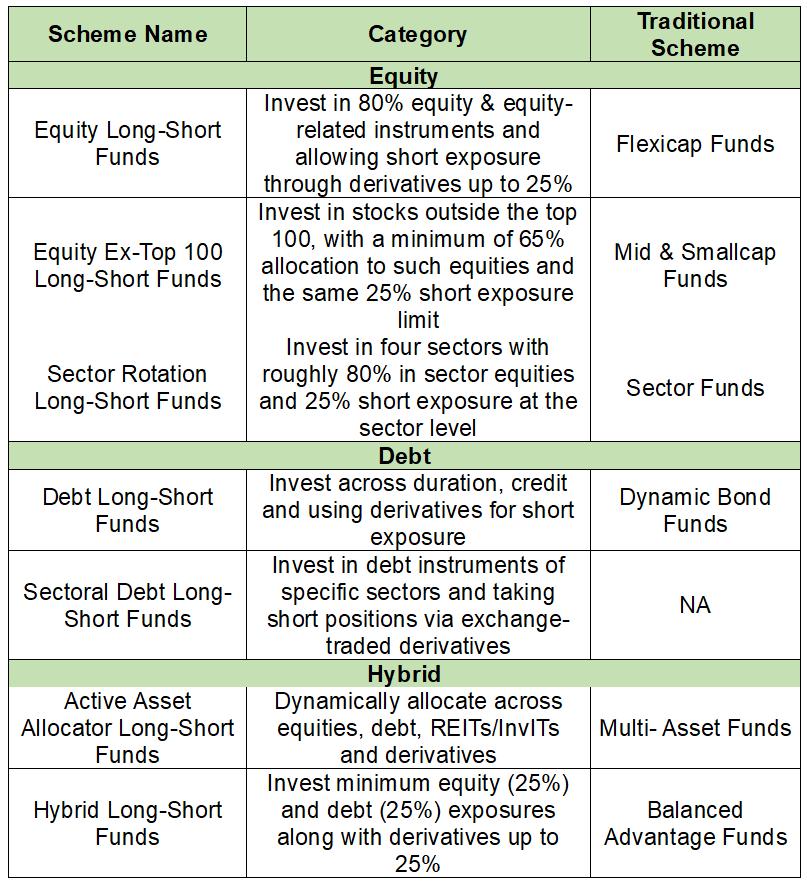 Under the regulatory framework, SIFs are permitted to launch investment strategies in three broad buckets: equity-oriented strategies, debt-oriented strategies and hybrid strategies.